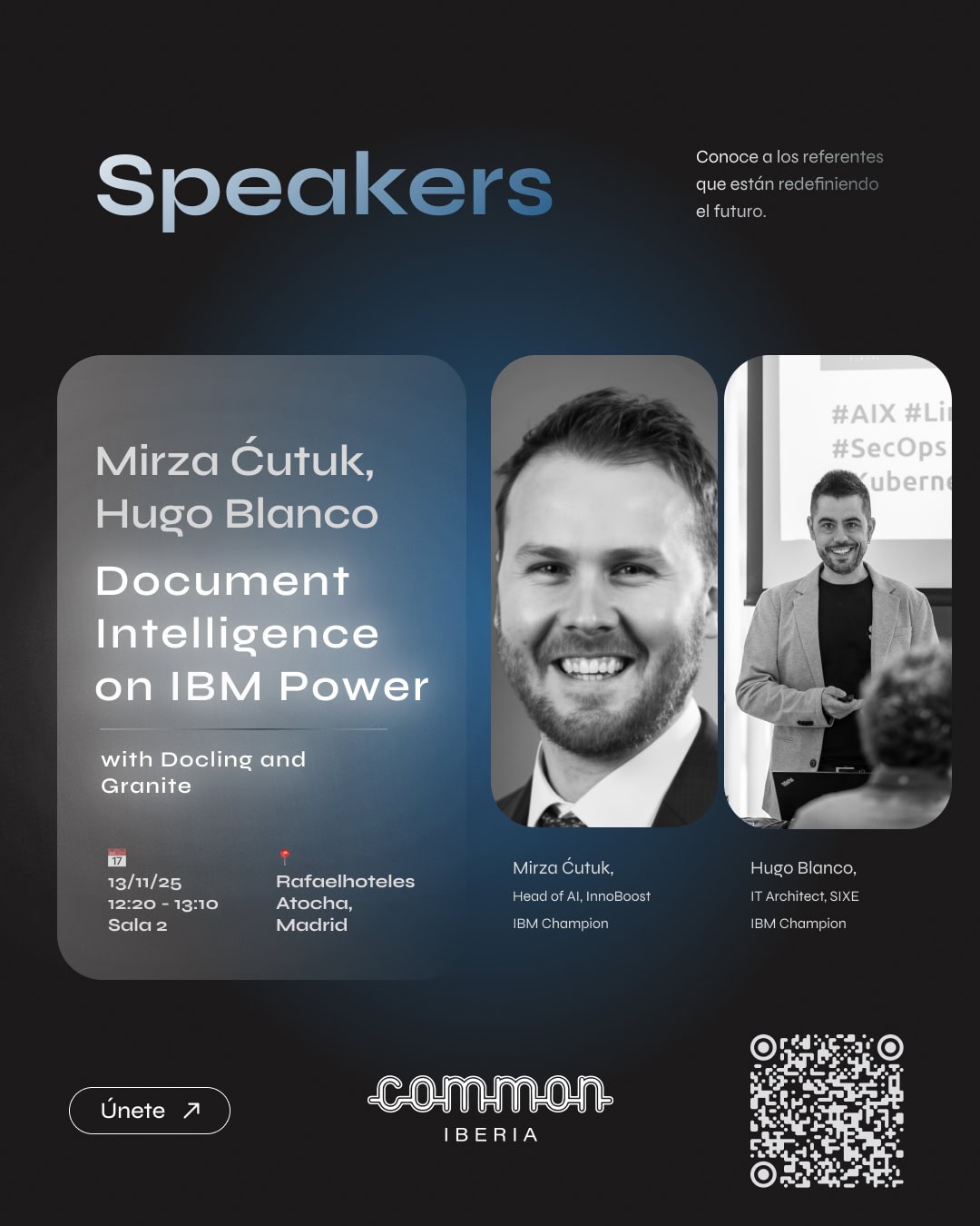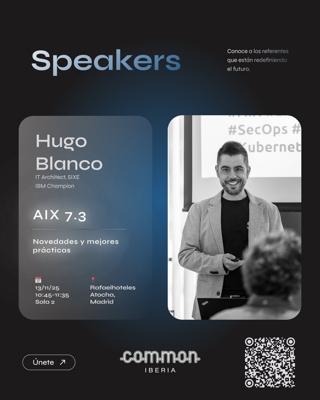 L’équipe de SIXE y participera dans le cadre de Common Iberia 2025. Nous serons de retour à Madrid les 13 et 14 novembre pour l’événement de référence de l’écosystème IBM i, AIX et Power. Deux jours dédiés aux derniers développements de la technologie Power, de l’annonce de Power 11 aux cas d’utilisation réels de l’IA, avec des experts internationaux, des champions IBM et des leaders de la communauté.