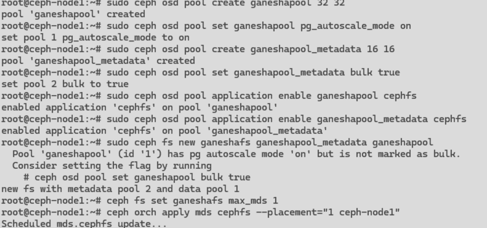 # sudo ceph osd pool set ganeshapool_metadata bulk true